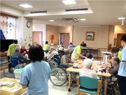 | 社会性の助長 | 必要な教養娯楽設備を整えると共に、施設での生活を心豊かで実りあるものとするため、適宜レクリエーションや季節の行事を行ないます。 【季節の行事】 花見会、七夕祭り、秋祭り、敬老会、運動会、クリスマス会、新年会、節分会、ひな祭り |