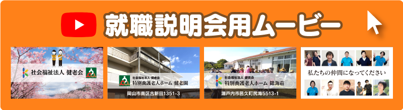 社会福祉法人 健老会は「特別養護老人ホーム 健老園」「特別養護老人ホーム 錦海荘」という2つの老人ホームを運営しております。